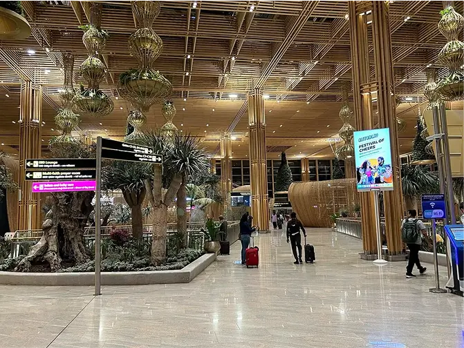 The airport’s design reflects Islamic architectural principles while incorporating modern amenities and efficient passenger processing systems.